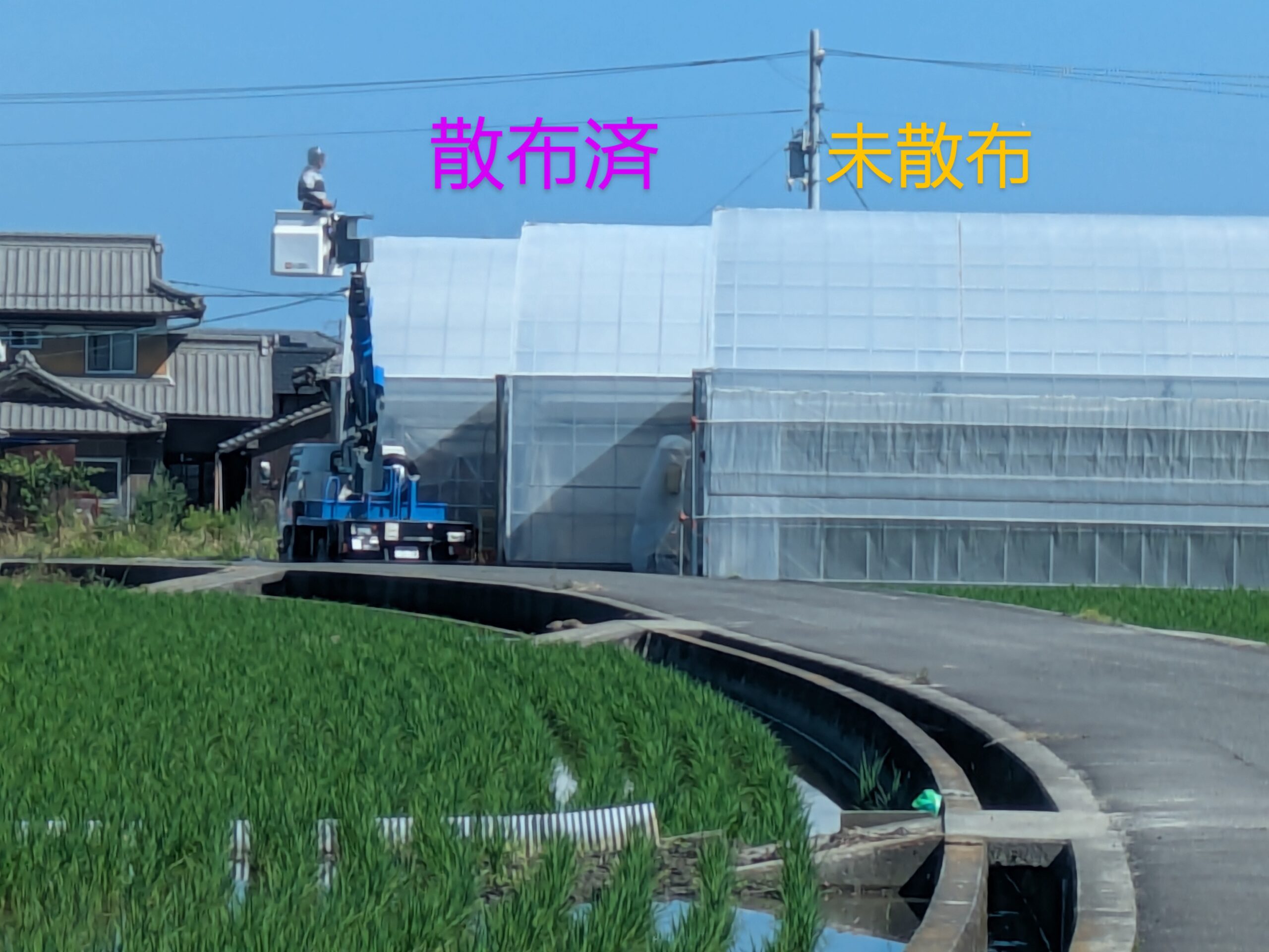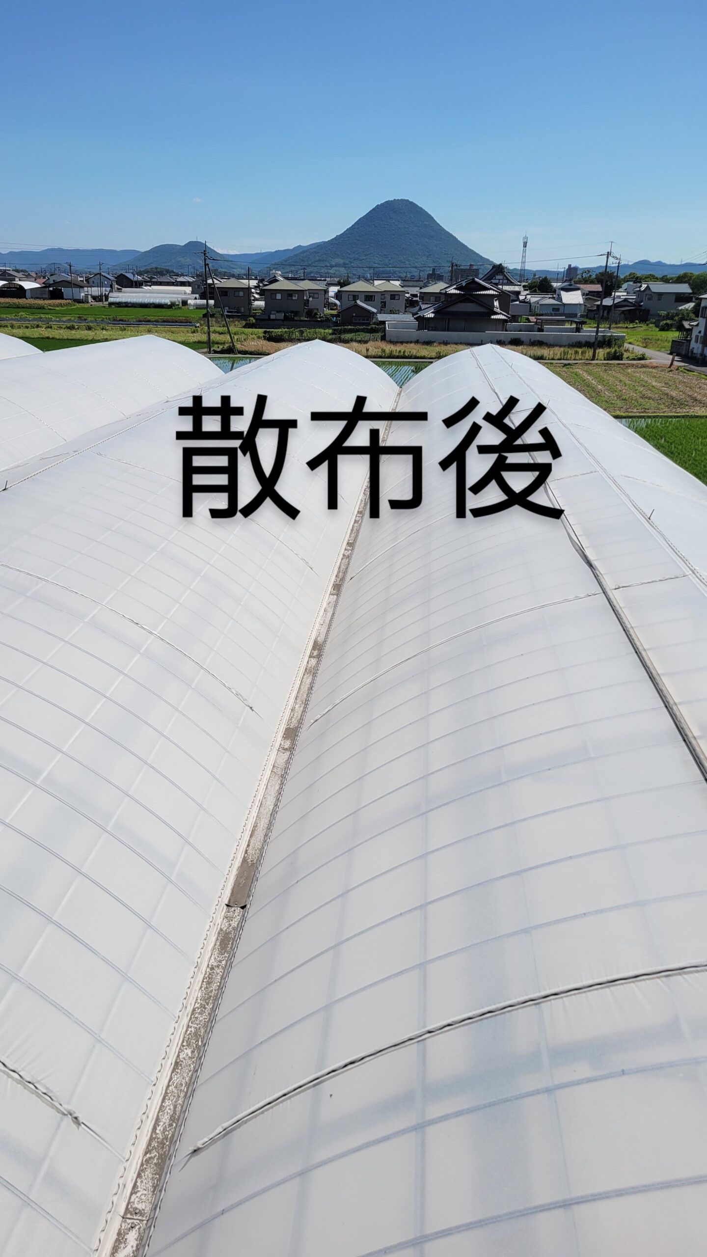 散布数週間後に道でバッタリ依頼主様に出会い、その後を聞くとハウス内の温度が他のハウスより数度低いと喜んで頂きました。